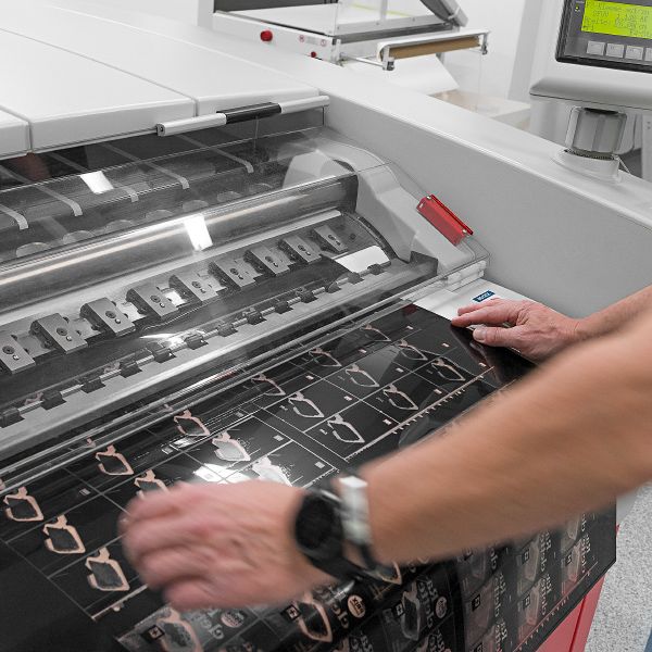 Wir setzen auf HD Flexo Technologie, welche eine hochauflösende 4000 ppi-Optik mit fein abgestimmten Rastern verbindet. Dies garantiert höchste Druckqualität und – stabilität. Die Druckplatten werden bei uns im Haus gefertigt, zur Maschinenimplementation ist ein vollautomatisches Plattenmontagegerät im Einsatz, was eine konstante, passeroptimierte Prozessqualität gewährleistet.